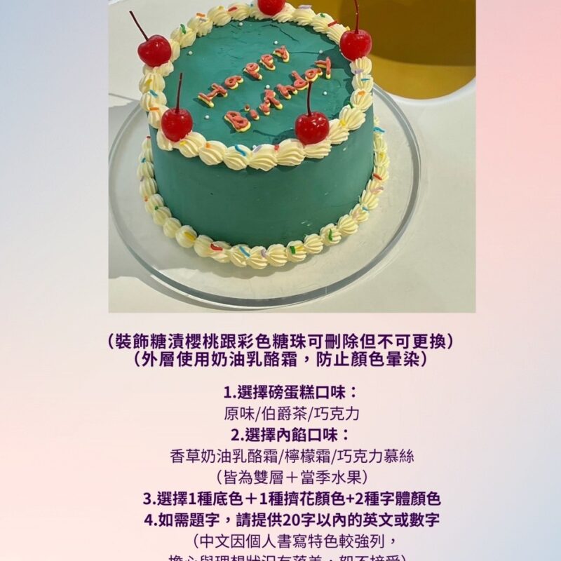 【生日蛋糕皆會贈送一支簡易蠟燭,取貨時可再挑選加購造型蠟燭及插牌】